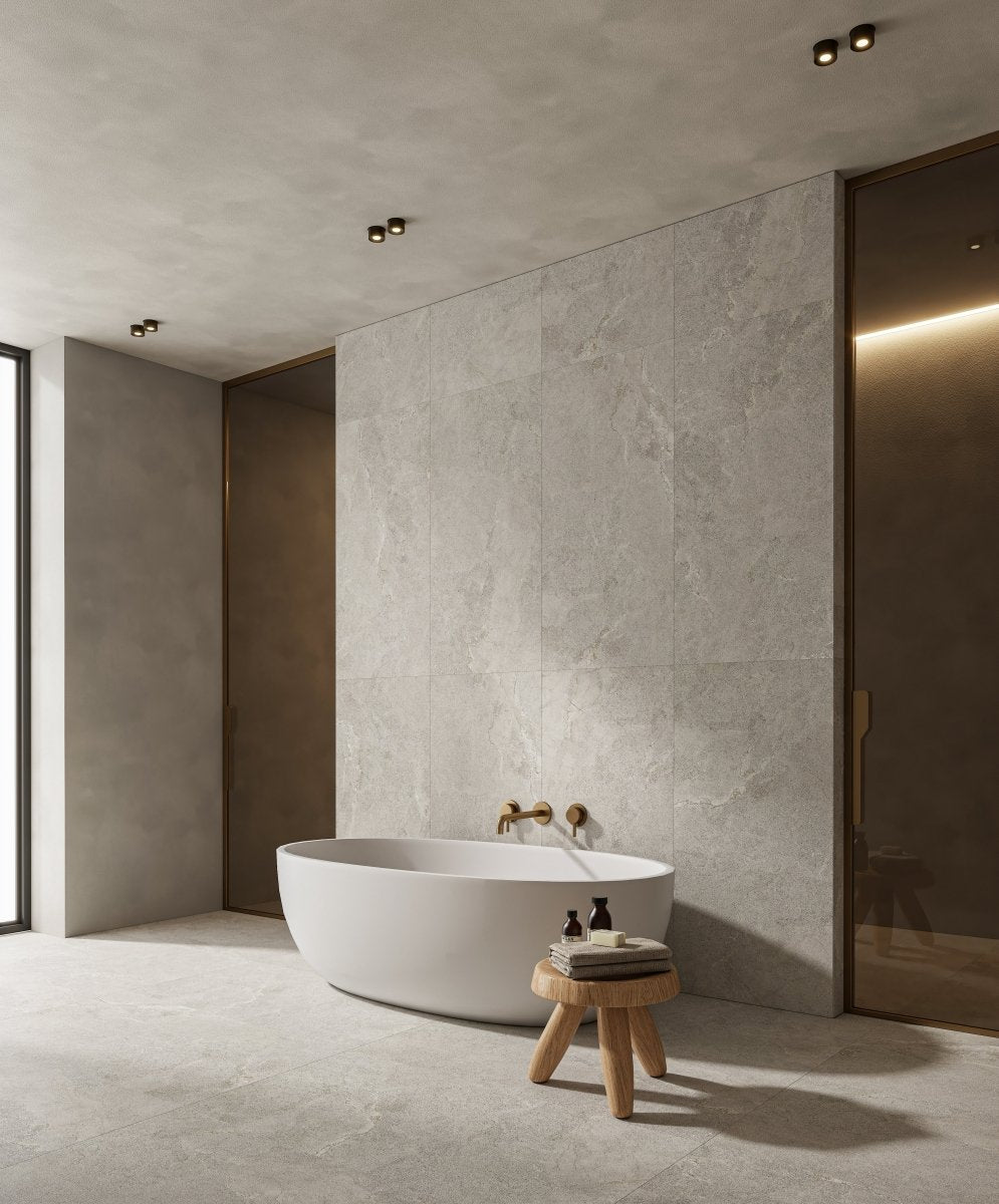 Anthology is a timeless tile featuring a beautiful grey natural stone look. Its subtle texture and refined tones bring a calm, modern elegance to any space, making it perfect for both contemporary and classic interiors.