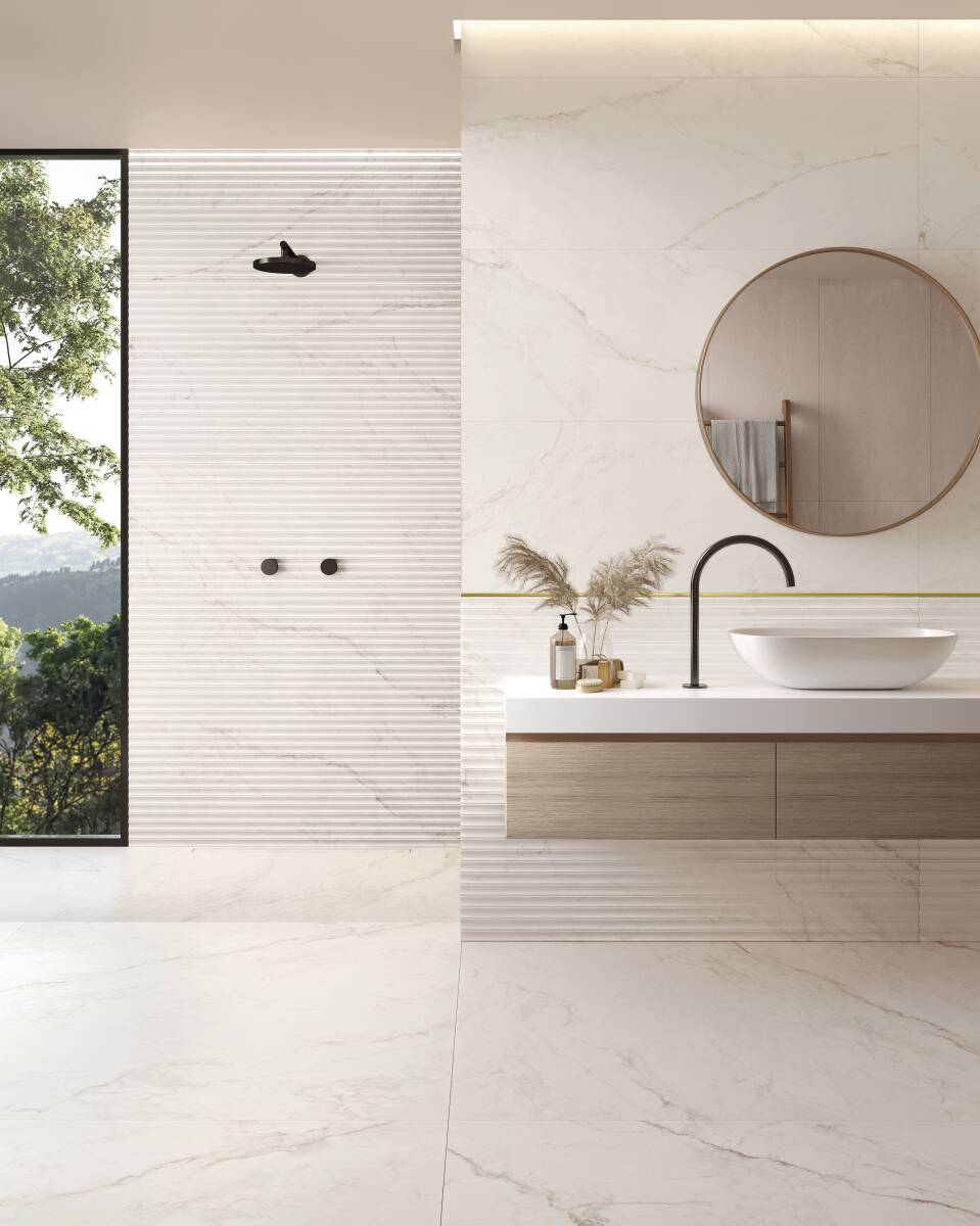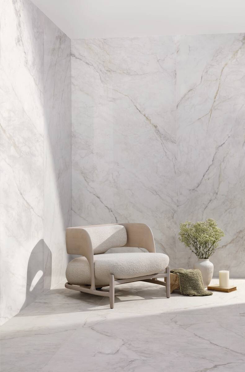 Inspired by the majestic quarries of the Apuan Alps, Apuano Oro features elegant grey and gold veining flowing across a luminous white background. Its expressive design captures the beauty of the mountains while offering a timeless aesthetic that suits both classic and contemporary spaces. Exceptionally versatile, Apuano Oro enhances and elevates any interior.