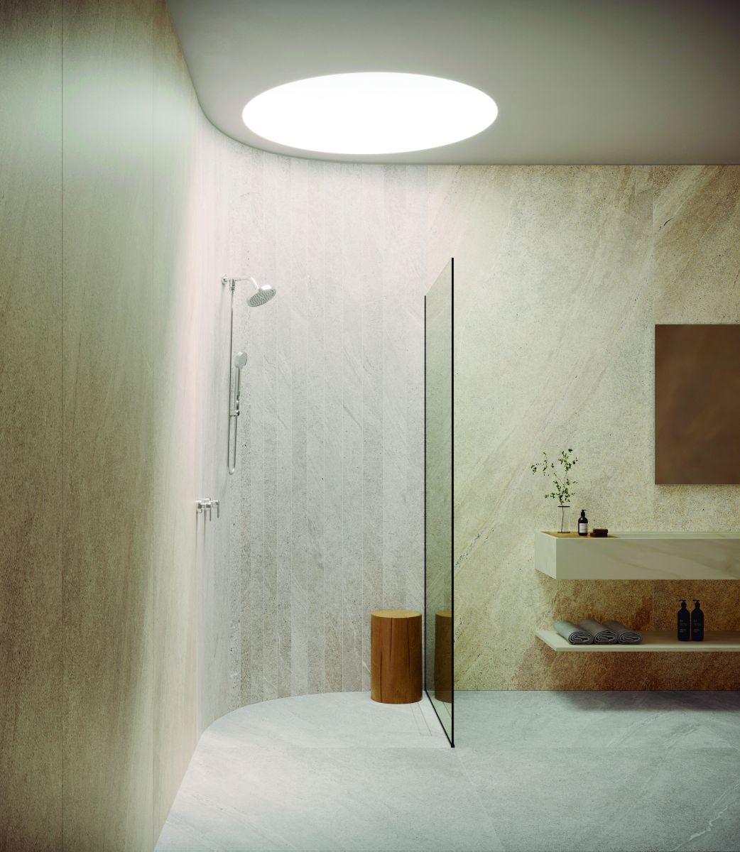 Folk Portobello appropriates these elements for a rhythmic fusion that gives rise to a surprising surface. Natural elements make up a recreated Limestone, a contemporary composition that brings back memories of time.