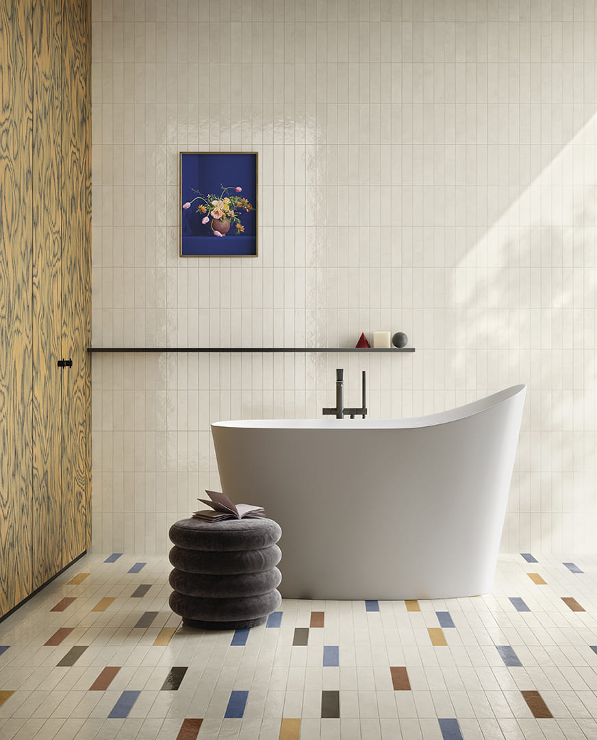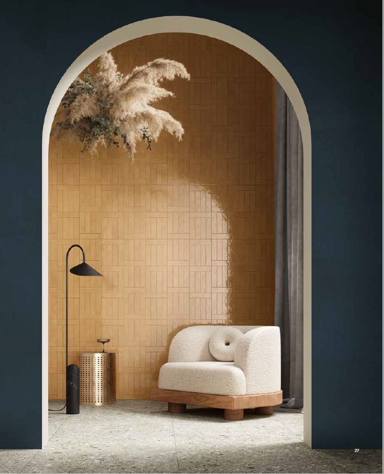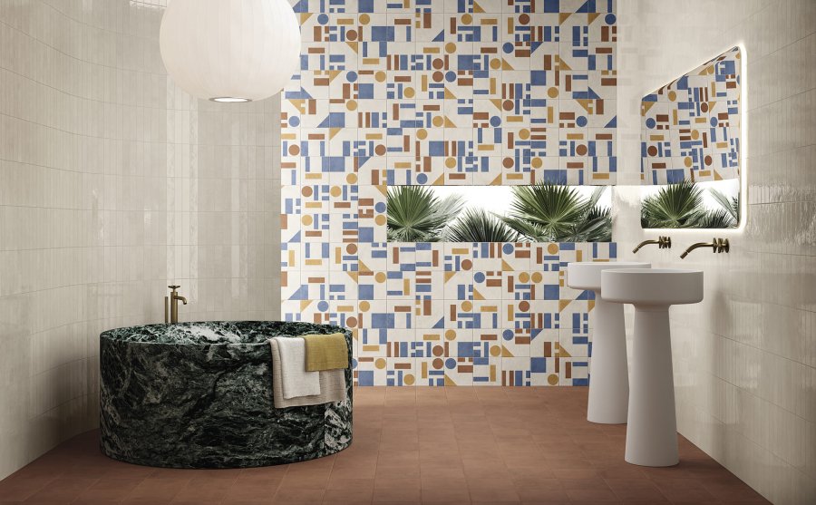 A rich assortment of warm, deep colours reflects the architectural surroundings of the earth and the intense personalities of blue and yellow bestow modernity and a stylistic freshness creating a vibrant and organic range. Inspired by clay, sand and raw earth these tiles take on a more natural design that softens the boldness of the colour.
