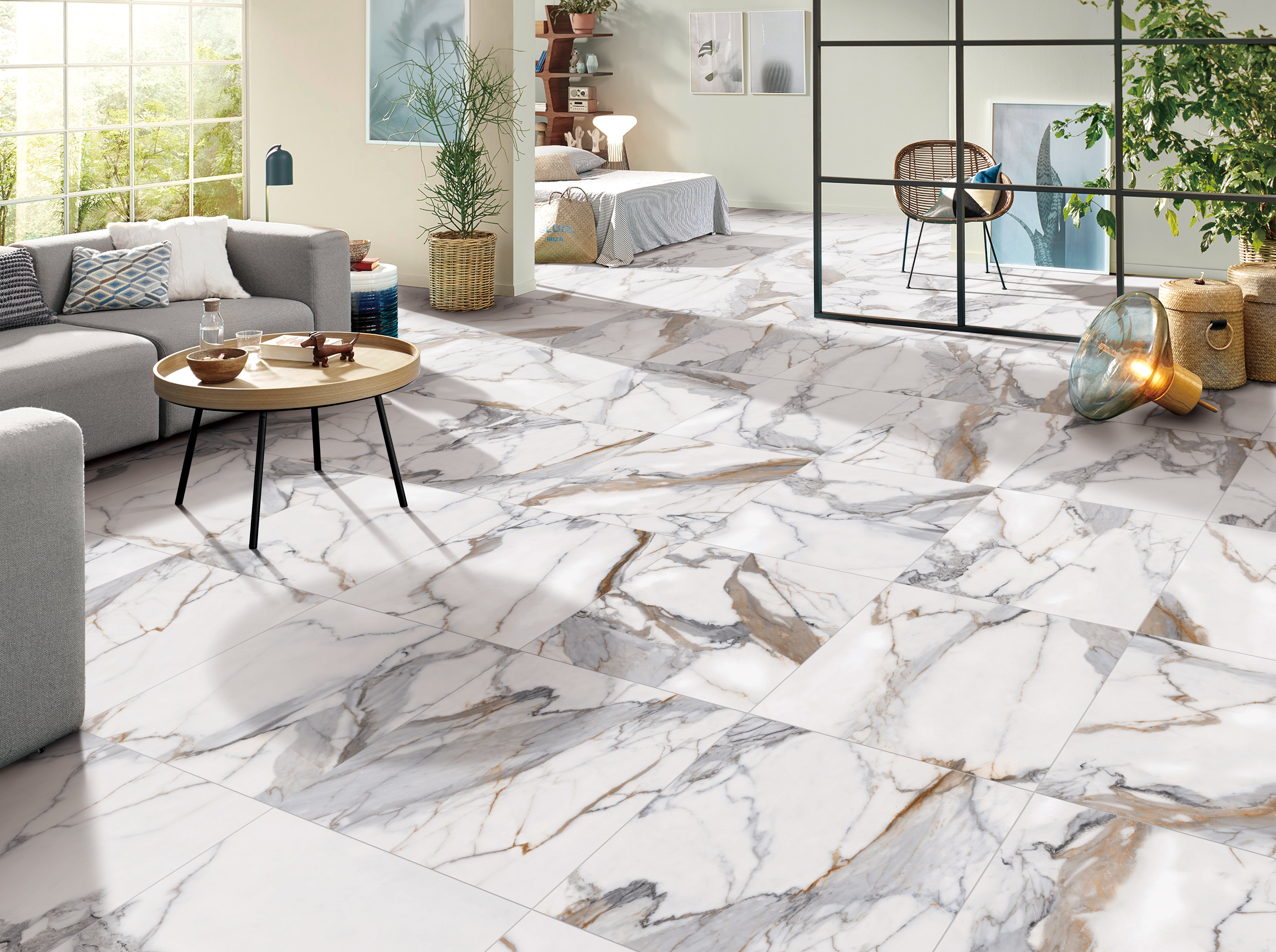 Calacatta Gold embodies the appeal and refinement of natural marble, paired with the convenience of porcelain. The vein patterns are strong, in mineral and earthy colours: the result is a tile with great visual impact.